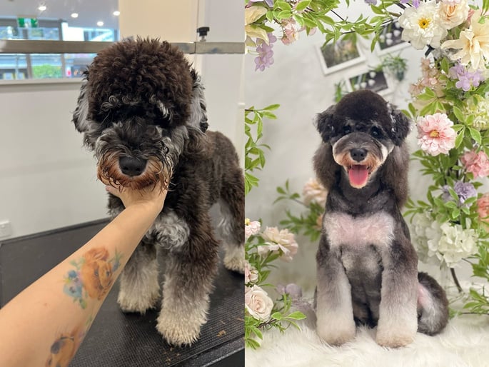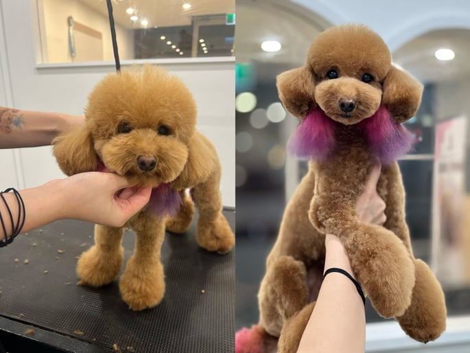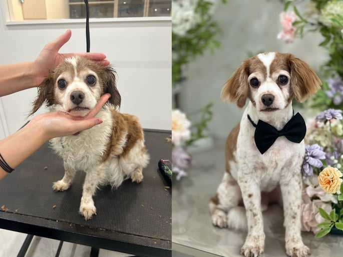 🌟 After: Watch your dog strut out of our salon with a glossy coat, trimmed nails, and a fresh, clean look! Our expert groomers provide top-notch services including bathing, brushing, nail trimming, ear cleaning, and stylish haircuts.